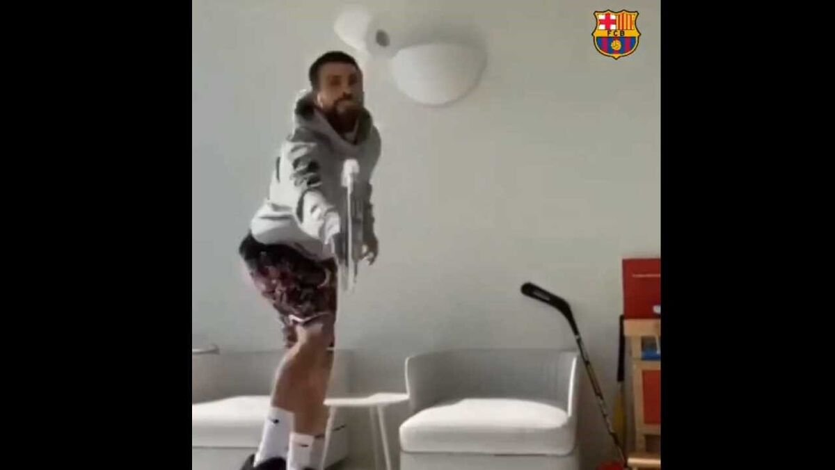 Novo desafio à vista: Piqué mostra como dar toques num rolo de papel higiénico com uma... raquete