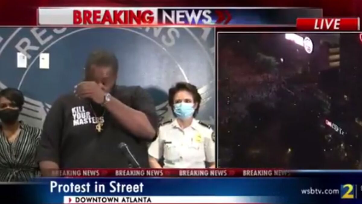 "Sou filho de um polícia de Atlanta. O meu primo é polícia na cidade de Atlanta e o meu outro primo é polícia de East Point. Tenho muito amor e respeito pelos polícias... Não tenho nada de positivo para dizer neste momento, porque não queria estar aqui, mas tenho responsabilidade de estar aqui... É meu dever dizer que temos o dever de não queimar a nossa própria casa por causa da raiva contra um inimigo. É o nosso dever fortificar a nossa própria casa para que ela seja uma casa de refúgio em tempos de organização. E agora é hora de pensar, planear, criar estratégicas, organizar e mobilizar. É hora de bater nos governantes de quem não gostam na hora da votação. É hora de cobrar a responsabilidade dos gabinetes dos prefeitos, chefes de polícia e vice-chefes. (...)