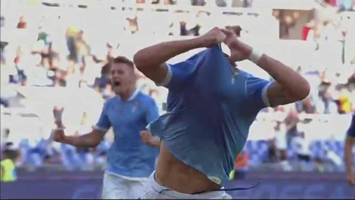 Ciro Immobile terá protagonizado um dos momentos mais caricatos deste sábado. Diante da Atalanta, o dianteiro salvou a Lazio da derrota com um golo de penálti aos 90'+2 e, no meio da euforia, tentou celebrar tirando a camisola. O problema foi que o equipamento não quis sair (pelo menos à primeira), o que levou o dianteiro até a cair no meio da sua tentativa falhada. Já no chão (algo que não se consegue observar no vídeo acima), acabou por conseguir mesmo os seus íntentos, algo que o levou a ver o cartão amarelo...