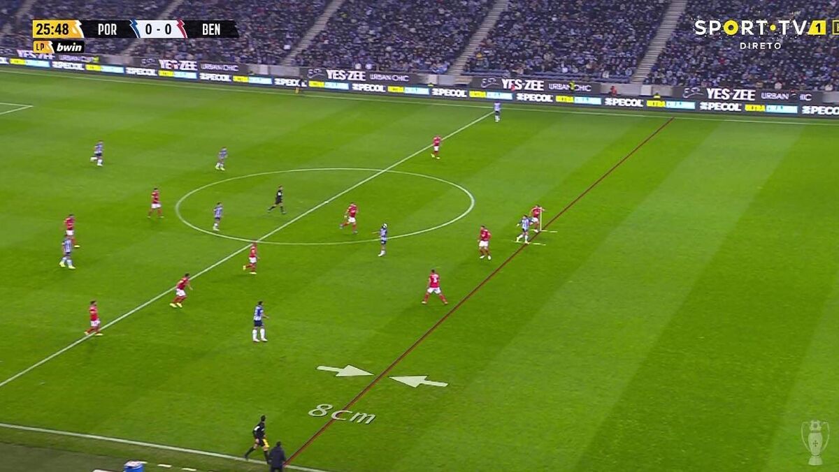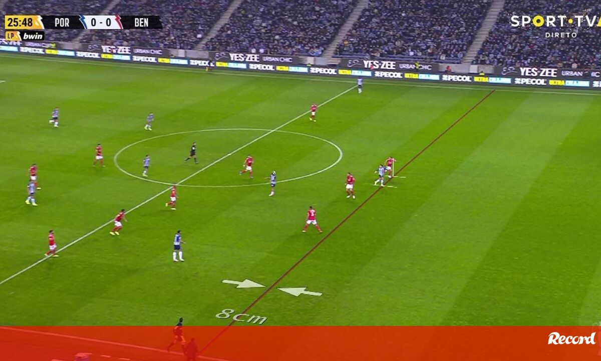 Aos 22' do FC Porto-Benfica, Pepê abriu o marcador mas o golo foi anulado por fora de jogo (8 centímetros), com o VAR a confirmar a decisão.