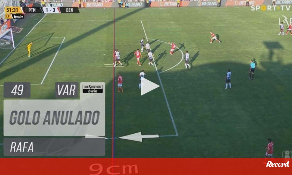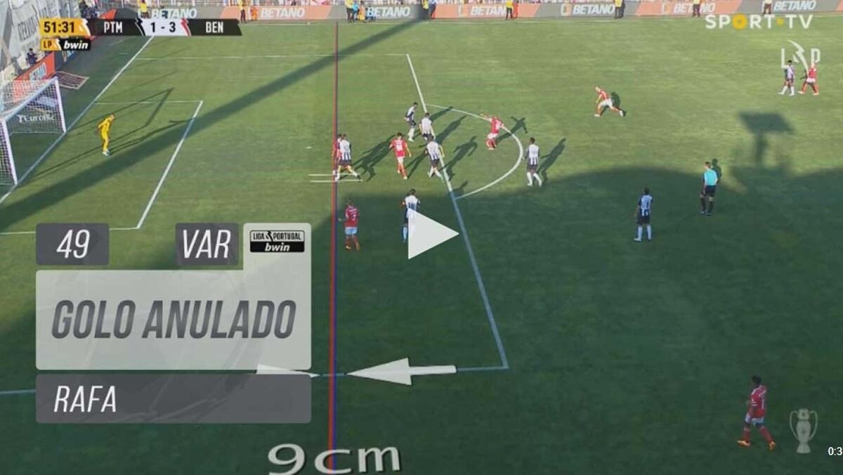 Aos 51' do Portimonense-Benfica, Rafa fez o que seria o 4-1 para os encarnados, aproveitando um erro do guarda-redes dos algarvios, mas o golo foi anulado por fora de jogo de 9 centímetros do avançado.