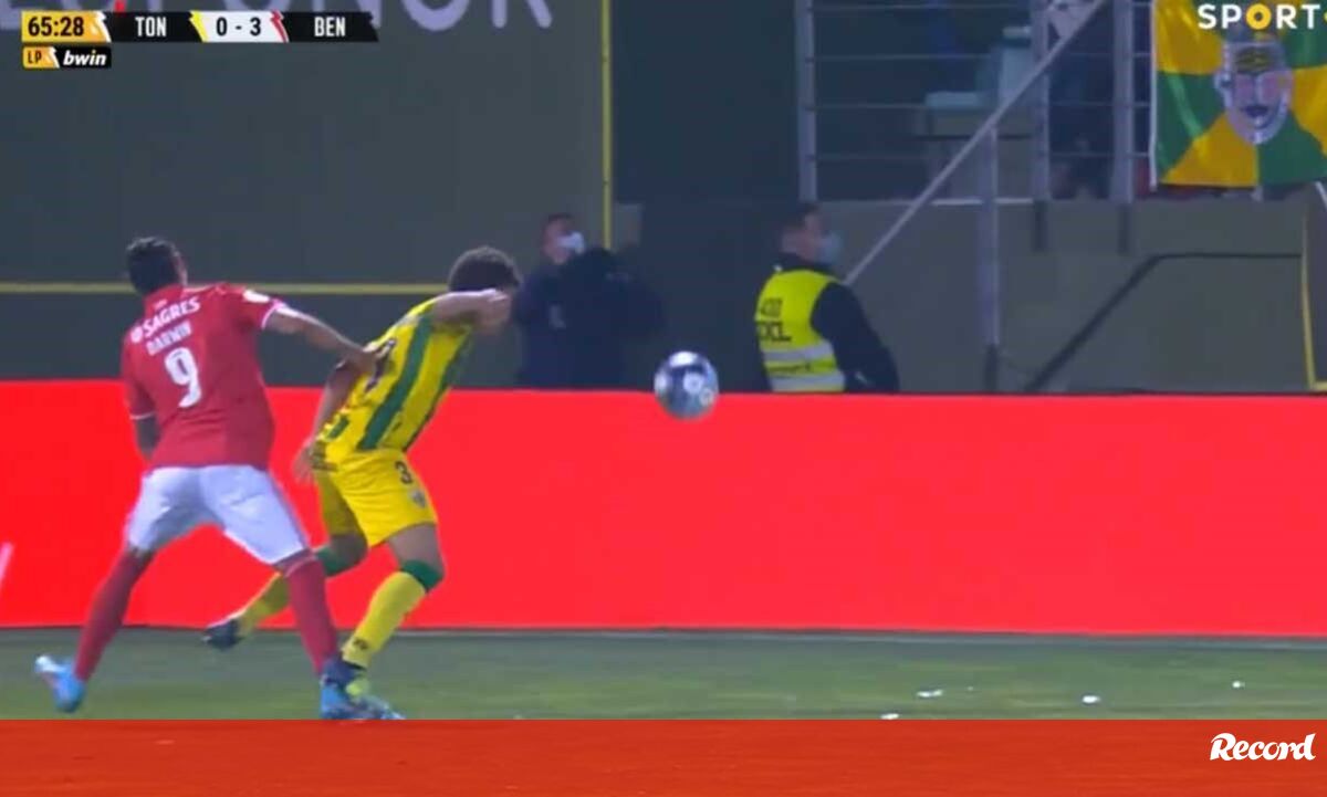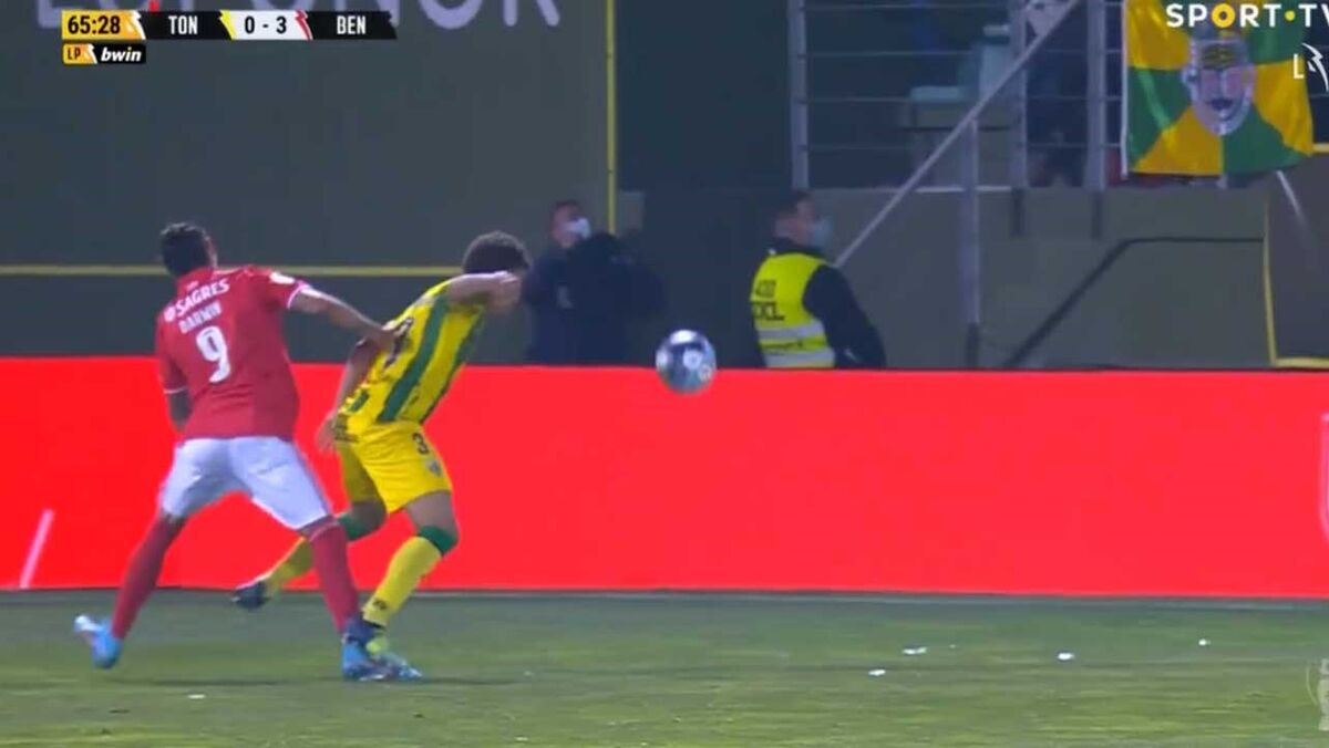 O lance da expulsão do lateral-esquerdo do Tondela diante do Benfica
