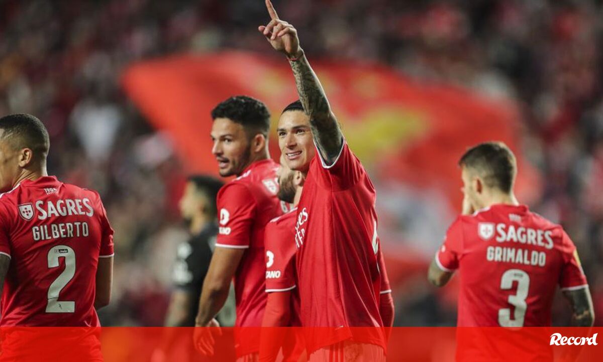Aos 52' do Benfica-V. Guimarães, Darwin bisou e fez o 3-0, de penálti, conquistado por Gonçalo Ramos.