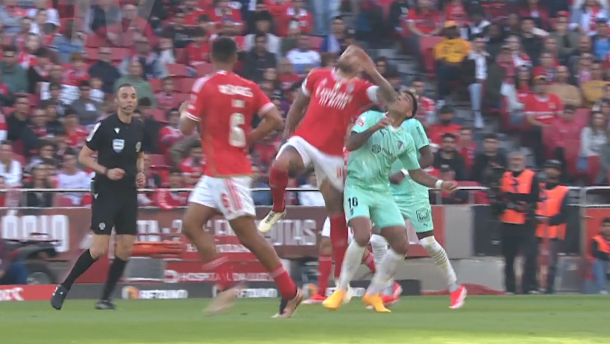 O lance entre Otamendi e Zalazar que Rui Duarte diz ter sido uma "agressão" do defesa do Benfica
