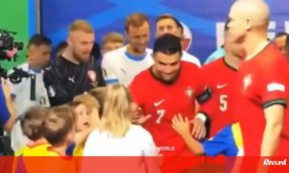 Cristiano Ronaldo fez as delícias de um grupo de crianças que se preparava para entrar em campo com os jogadores de Portugal, antes do encontro com a Rep. Checa, no Euro'2024. Bem disposto, o craque português deu 'high-fives' e interagiu com a miudagem. As imagens do momento têm sido partilhadas nas redes sociais. (Vídeo Twitter)