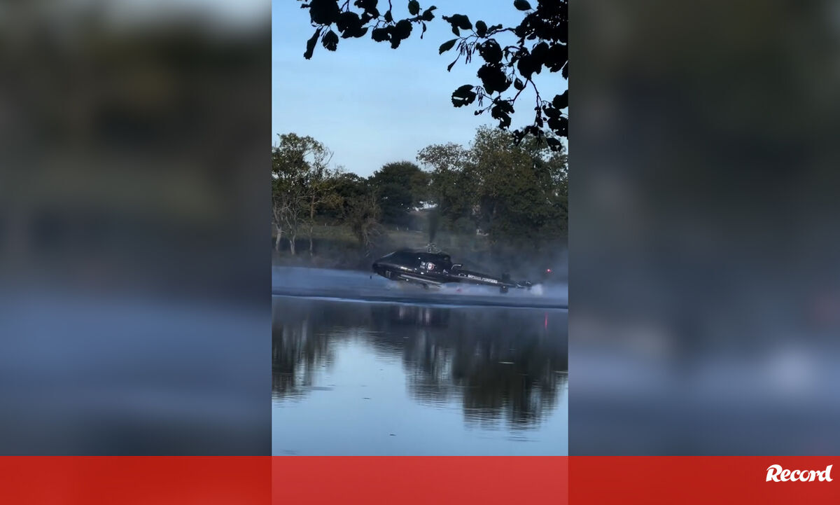 O momento em que helicóptero de combate a incêndios cai num lago em França