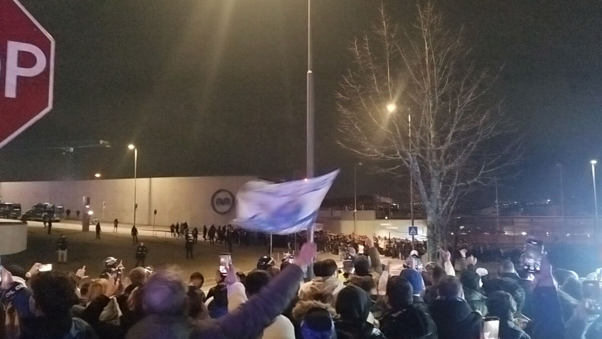 O momento em que os adeptos do Benfica chegam ao Dragão acompanhados pela polícia
