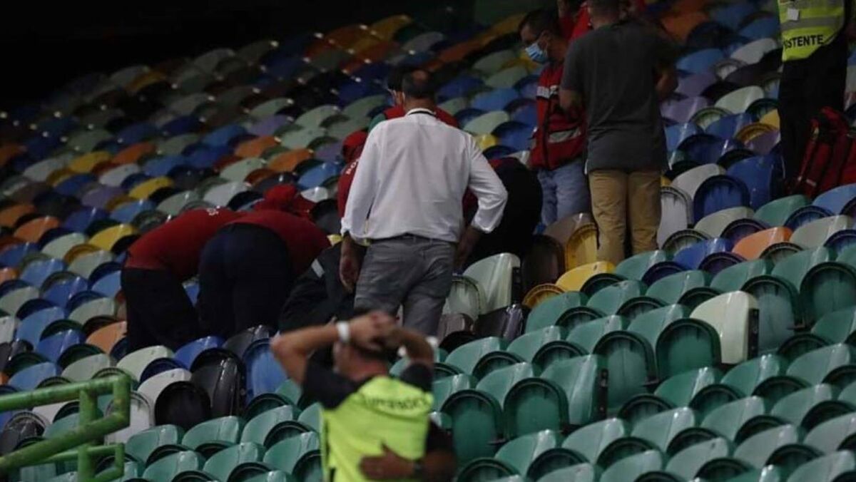 O momento em que um adepto do Sporting foi assistido após cair da bancada de Alvalade