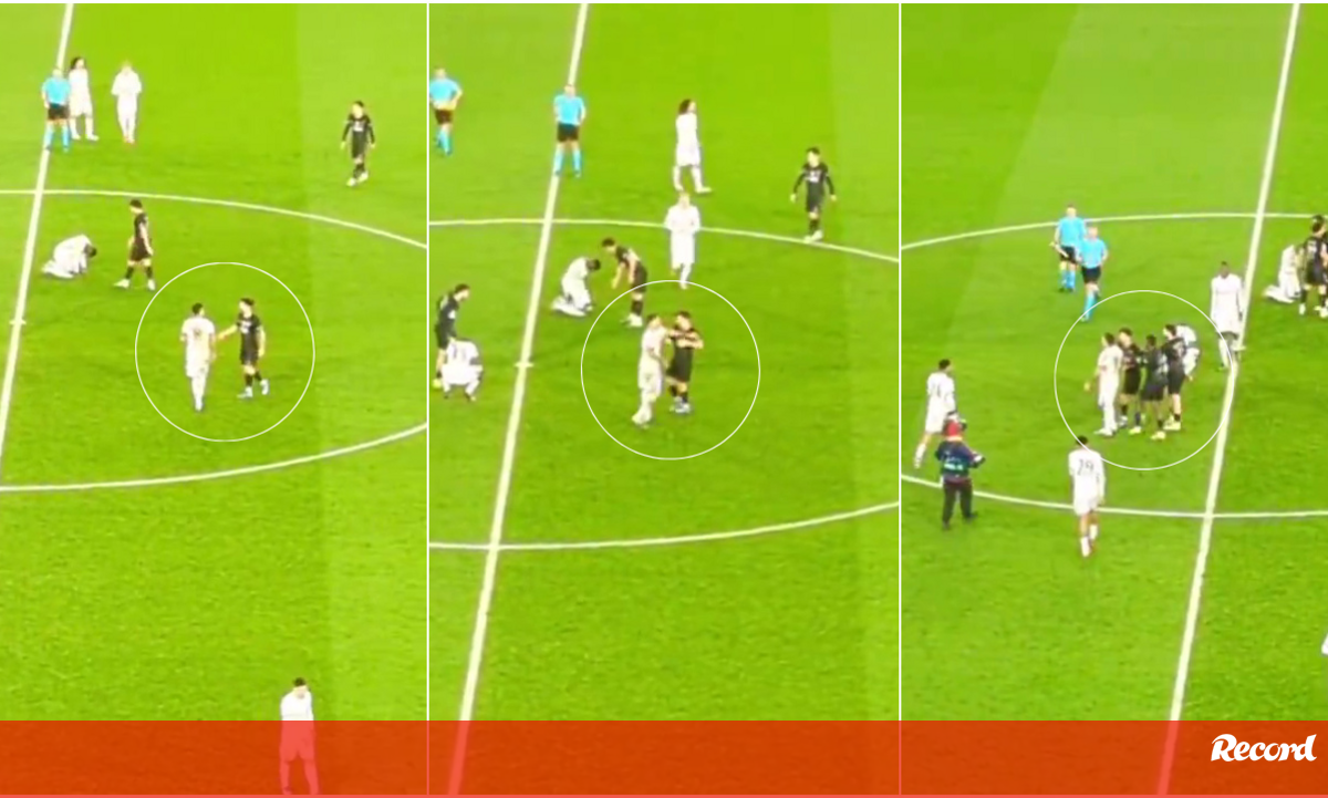 O momento tenso entre Vitinha e Enzo Fernández no final do PSG-Chelsea: até Nuno Mendes teve de intervir