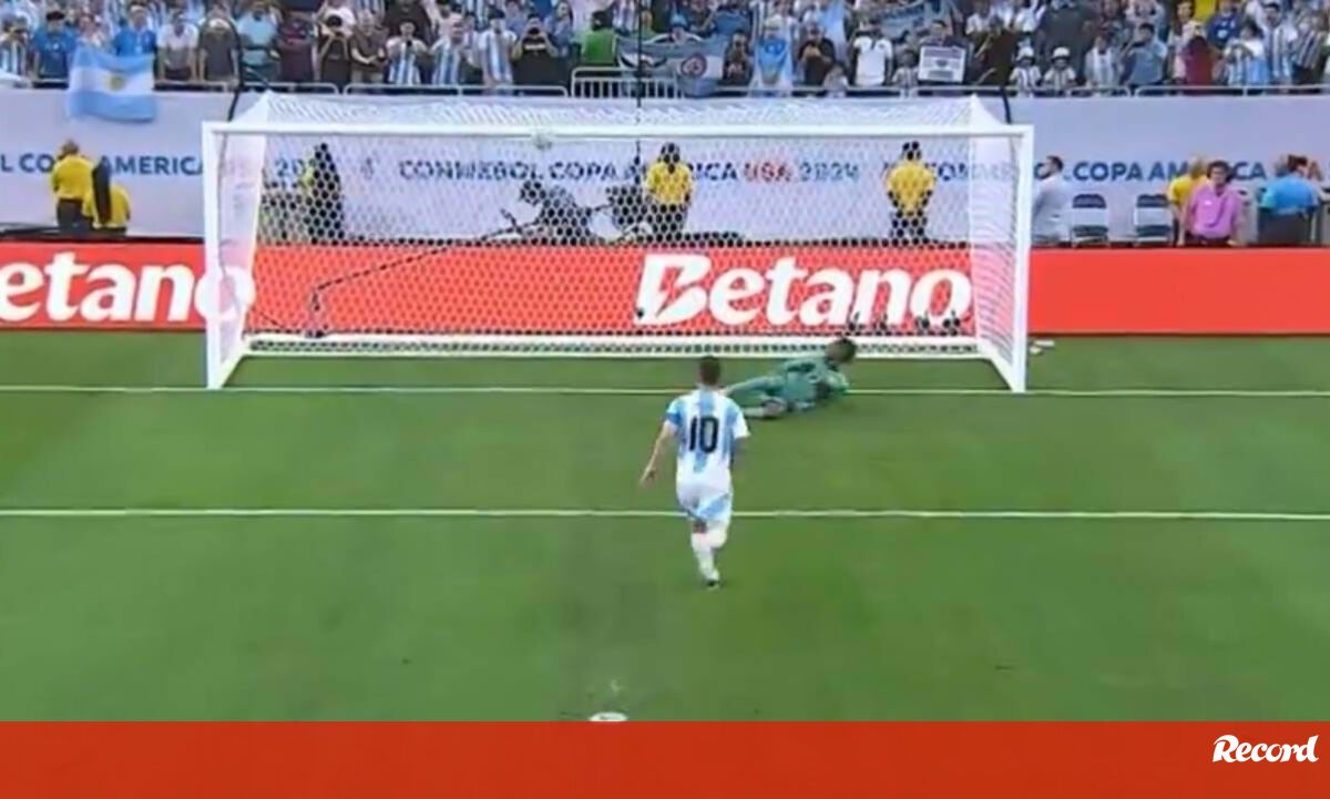 Lionel Messi falhou um penálti 'à panenka' no jogo da Argentina com o Equador, nos quartos de final da Copa América, desempatado nas grandes penalidades. O avançado atirou bem, mas a bola embateu caprichosamente na trave... Valeu o guarda-redes Emiliano 'Dibu' Martínez, que salvou a albiceleste e garantiu, assim, o apuramento para as 'meias'. (Vídeo Twitter)