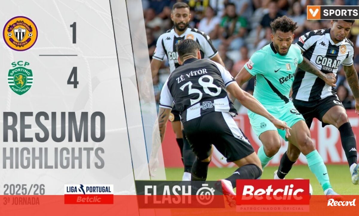 O Sporting venceu em casa do Nacional por 4-1, em jogo da 3.ª jornada da Liga Portugal Betclic. Veja aqui os principais lances do encontro.