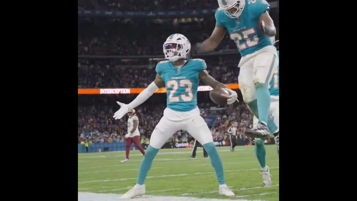 Jack Jones foi herói na vitória dos Miami Dolphins sobre os Washington Commanders no Bernabéu, estádio do Real Madrid, por 16-13, no prolongamento. Em declarações no final do encontro na capital espanhola, o cornerback de 27 anos, que fez uma interceção decisiva no encontro, falou sobre o momento em que festejou com o 'siii' de Cristiano Ronaldo, levando as bancadas do Bernabéu à loucura.