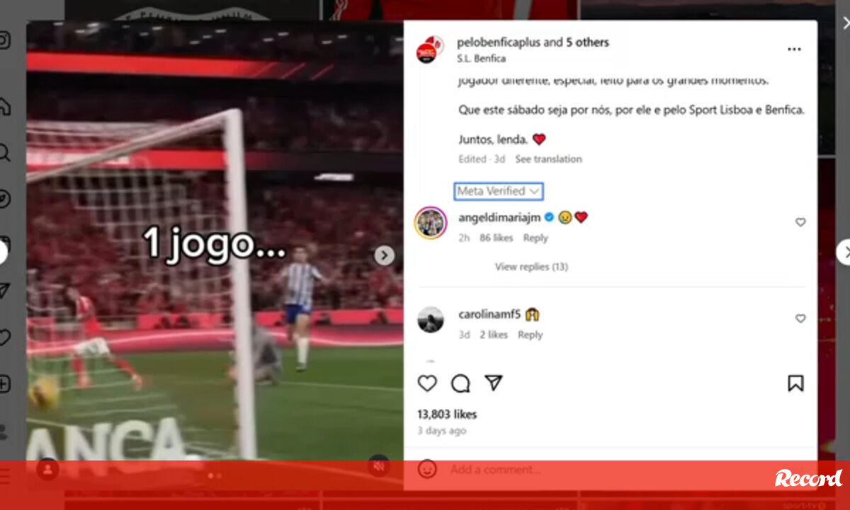 Di María está a pouco mais de um mês de terminar contrato com os encarnados. Como Record já deu conta, a SAD liderada por Rui Costa pretende apresentar, ao extremo e a Otamendi, uma proposta de extensão do contrato por 15 dias. Esta sexta-feira, o craque argentino reagiu a uma publicação feita por uma página de apoio ao Benfica na qual se apontava o dérbi de amanhã como o último jogo de 'Angelito' na Luz, o que deixou os adeptos das águias em alerta para a saída do jogador... O assunto foi tema de análise no 'Liga NOW'