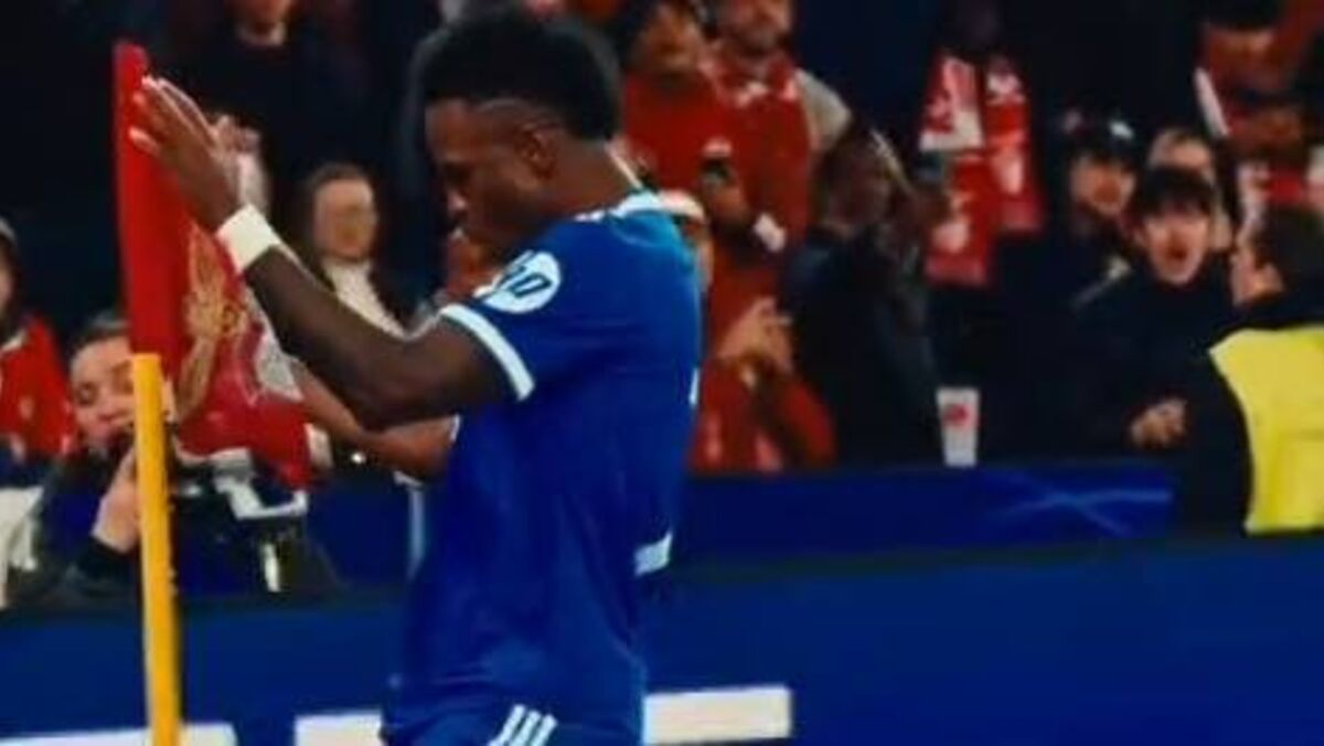 Vinícius publicou esta quarta-feira na rede social 'TikTok' um vídeo da celebração após marcar frente ao Benfica. Na legenda, o brasileiro, que denunciou um alegado insulto racista por parte de Prestianni, escreveu "os pretos no devido lugar", fazendo referência à música que também acompanha o vídeo e que foi criada em 2024 por onze artistas do funk brasileiro e o rapper Ice Blue com o objetivo de amplificar a luta antirracista e homenagear Vinícius [Vídeo: TikTok/Vinícius].