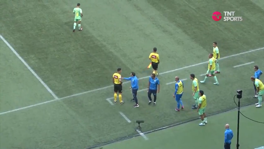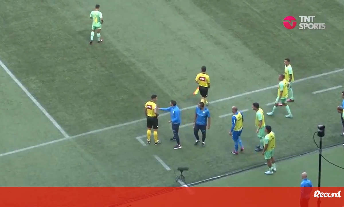 Os protestos que deram origem à expulsão de Abel Ferreira na 1.ª parte do Palmeiras-Cuiabá