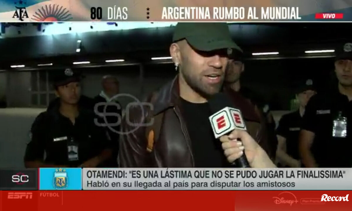 Além de revelar que vai deixar a seleção argentina após o Mundial'2026, Otamendi, que termina contrato com o Benfica em junho, foi questionado sobre a possibilidade de rumar ao River Plate [Vídeo: Sports Center/X].