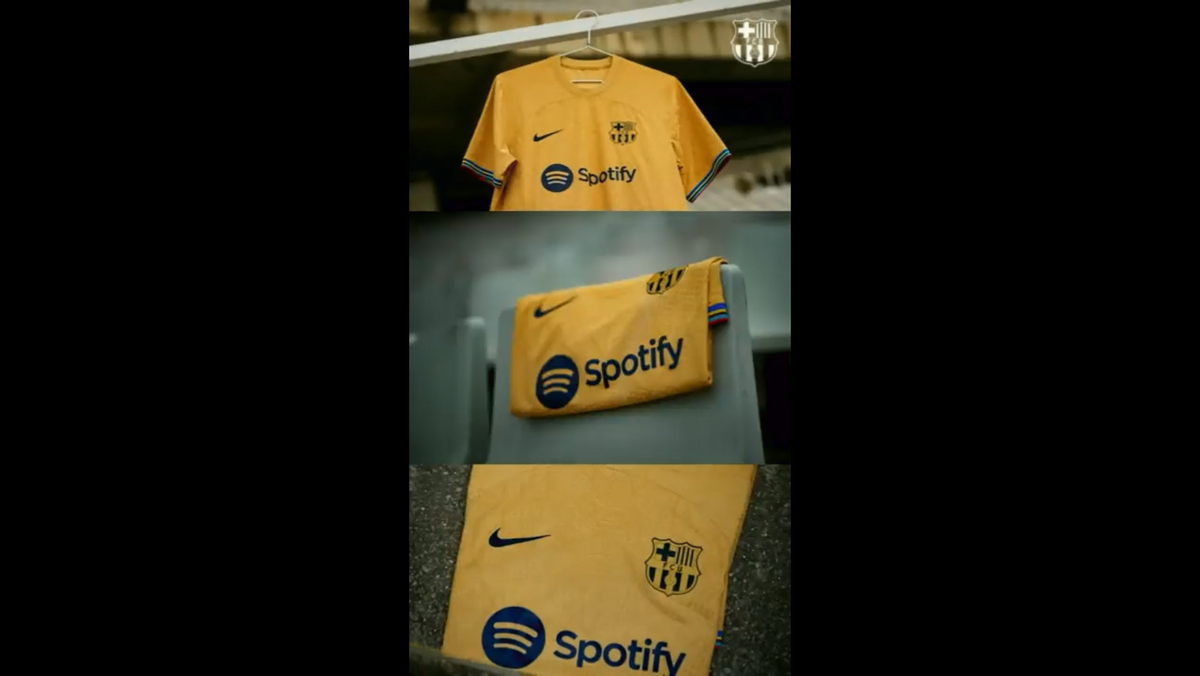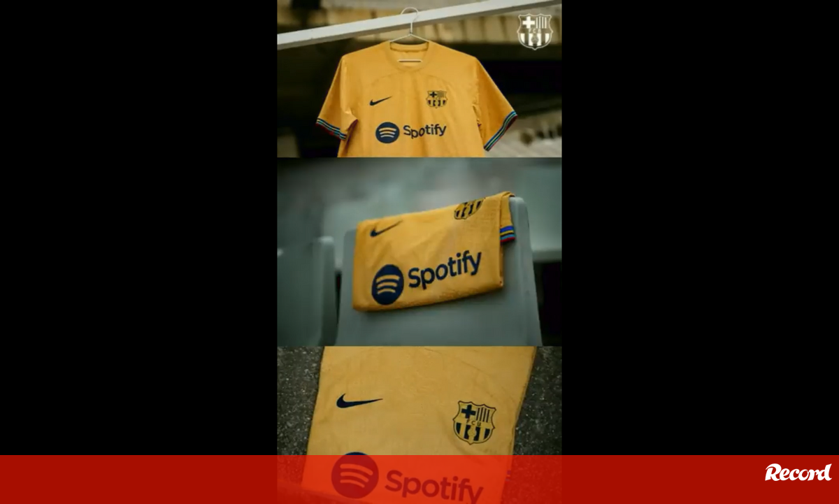 O Barcelona apresentou esta segunda-feira o equipamento alternativo - em tons dourados - para a temporada 2022/23, inspirado no ano de 1992. "Para uma era de ouro", escreveram os catalães nas redes sociais. (Vídeo: Barcelona)