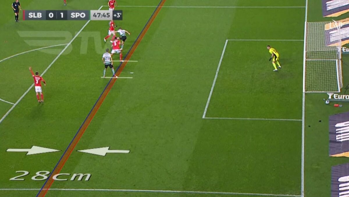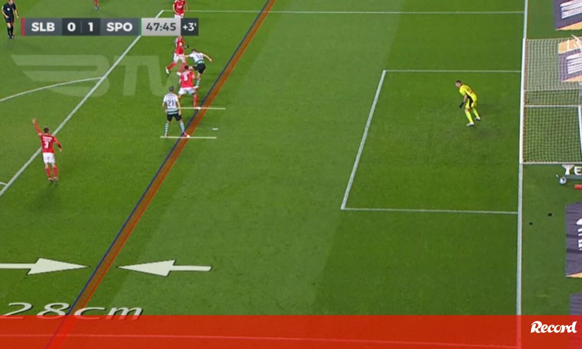 O golo anulado a Paulinho no final da 1.ª parte do Benfica-Sporting