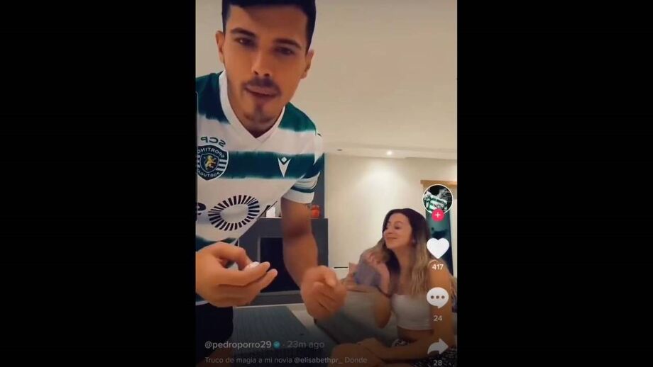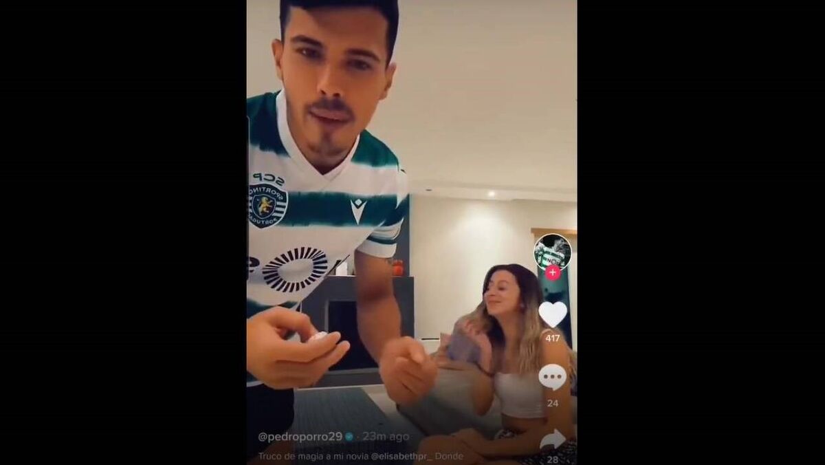 Pedro Porro já habituou os seus fãs a várias publicações engraçadas nas redes sociais. Desta vez, o lateral do Sporting decidiu lançar mais um vídeo, no qual surgiu acompanhado pela namorada, decidindo surpreendê-la com um truque de magia... [Créditos: TikTok/PedroPorro]