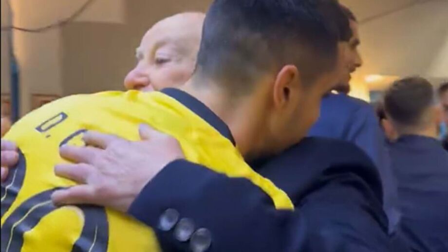 Pinto da Costa desceu ao balneário do Dragão e felicitou a equipa após apuramento para os 'oitavos' da Champions. Diogo Costa, um dos primeiros a ser saudados, teve até direito a um abraço especial.