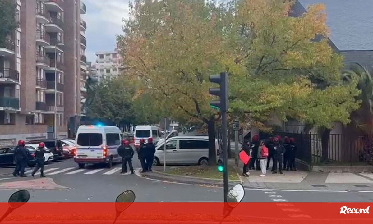 A polícia espanhola está em alerta depois de surgiram relatos de que várias dezenas de adeptos do Benfica entraram com engenhos pirotécnicos em estebelecimentos comerciais em San Sebastián. Assim que o alerta foi dado, um forte contingente policial deslocou-se ao local. Já junto ao estádio, perto de uma escola primária, instalou-se o caos, com várias pessoas, incluindo adeptos bascos, em correria. Nas imediações da Reale Arena, ouviram-se quase duas dezenas de petardos.