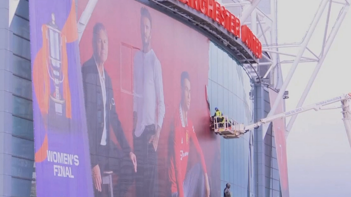 Poster gigante de Cristiano Ronaldo arrancado em Old Trafford
