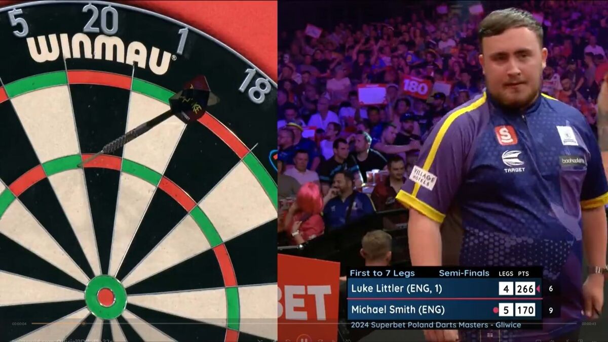 Luke Littler, de apenas 17 anos, já se tornou num autêntico fenómeno no mundo dos dardos e, este sábado, voltou a estar em destaque ao vencer o Poland Darts Masters e eliminar algumas das maiores estrelas da modalidade. No entanto, e apesar de ter batido o compatriota Rob Cross na final, os melhores momentos do jovem inglês aconteceram nas meias-finais quando, frente a Michael Smith, assinou mais uma jogada para ver e rever: o primeiro dardo não saiu como Littler queria e, após fazer uma breve conta de cabeça, não deu hipótese e atingiu os 266 pontos que precisava para fechar a ronda. (Vídeo: X/PDC Darts)