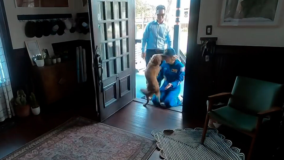 Pura felicidade: o momento em que a astronauta Christina Koch reencontra a sua cadela no regresso a casa