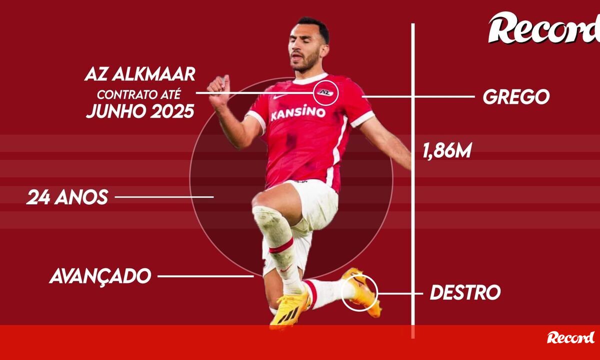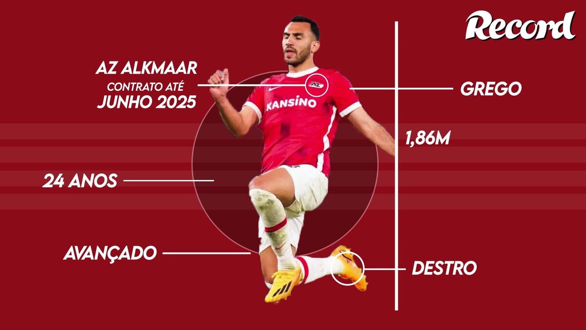 O jornal grego 'Sport24' adianta o interesse do Benfica em Vangelis Pavlidis, avançado do AZ Alkmaar e melhor marcador dos holandeses na presente temporada. Em 39 jogos oficiais, o internacional helénico, de 24 anos, apontou 22 golos e fez 12 assistências. Esteve em destaque na Liga Conferência, com 5 golos em 7 partidas.