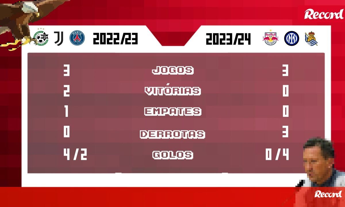 Comparativo entre primeiros três jogos da fase de grupos de 2022/23 e 2023/24