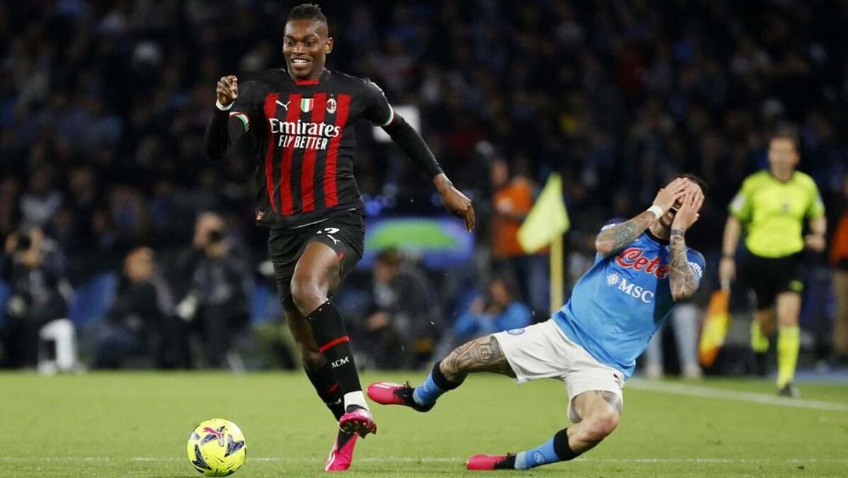 Aos 59' do Nápoles-Milan, Rafael Leão bisou após uma grande arrancada, que culminou com um forte remate de pé esquerdo.