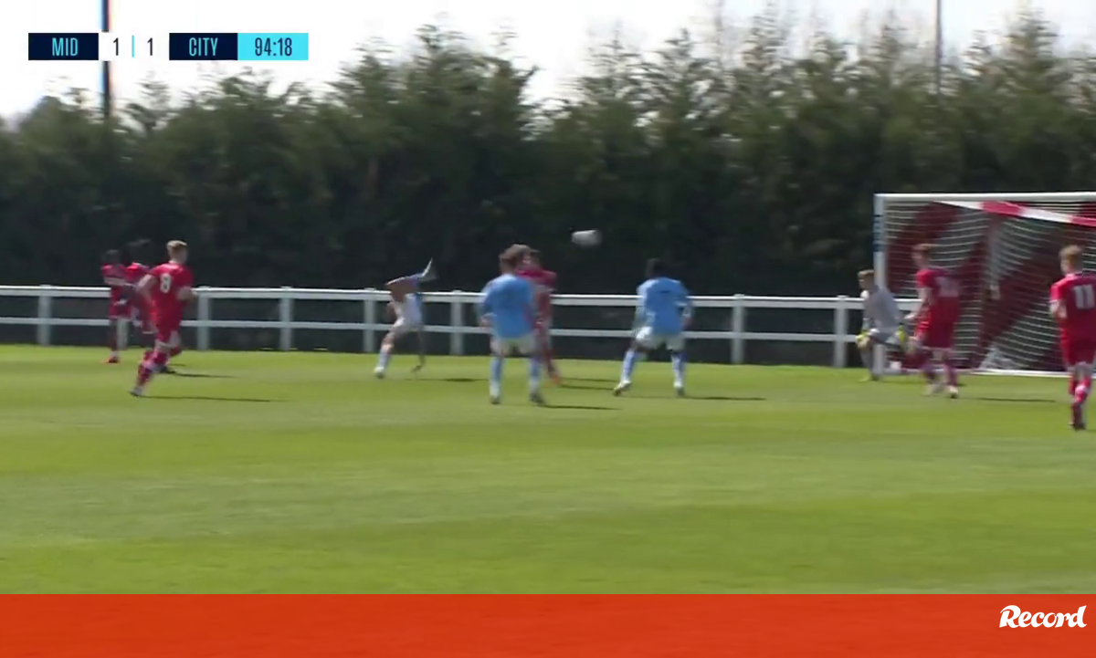 Remate de escorpião nos descontos para decidir um jogo? Craque dos sub-18 do Man. City mostra como se faz