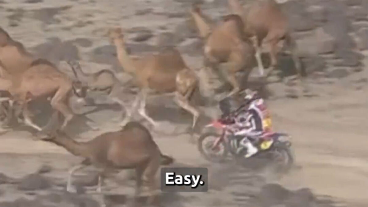 O Dakar'2026 terminou no sábado, mas ainda muito se fala sobre a forma como tudo foi decidido nas motos, com Luciano Benavides a acabar em primeiro com uma vantagem de 2 segundos para Ricky Brabec. Ora, o norte-americano só pode dizer mal da sua sorte, já que na penúltima tirada perdeu bem mais do que esses 2 segundos devido a um grupo de camelos que se lhe atravessou no caminho. É... a culpa foi dos camelos!