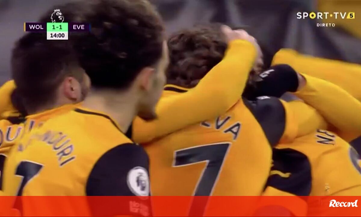 Rúben Neves surge na grande área do Everton e empata a partida para o Wolves