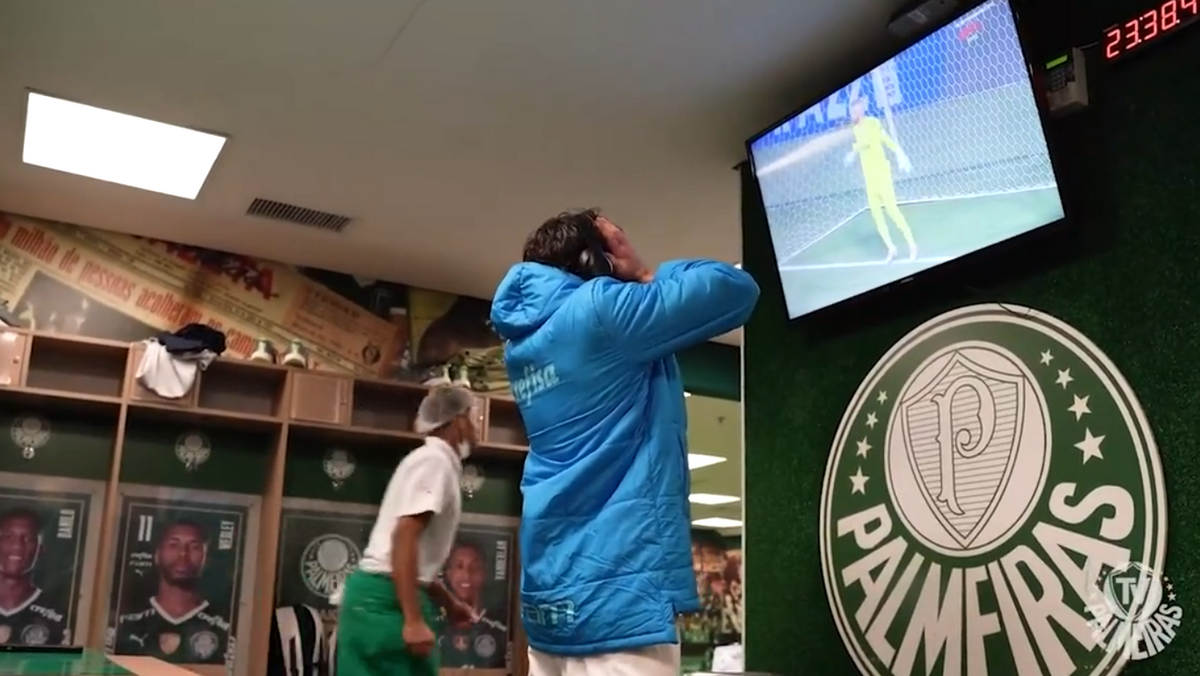 Gustavo Scarpa foi expulso na partida com o Atlético Mineiro aos 81 minutos e teve de ver o resto do jogo no balneário. O médio do Palmeiras assistiu aos penáltis naquele mesmo local mas, face ao delay entre a transmissão e o que foi acontecendo no Allianz Parque, usou uns auscultadores com música bem alta para não dar conta das reações dos adeptos do Verdão. Assim, vibrou 'em direto' e, no fim, correu para o campo para festejar com os companheiros de equipa de Abel Ferreira.