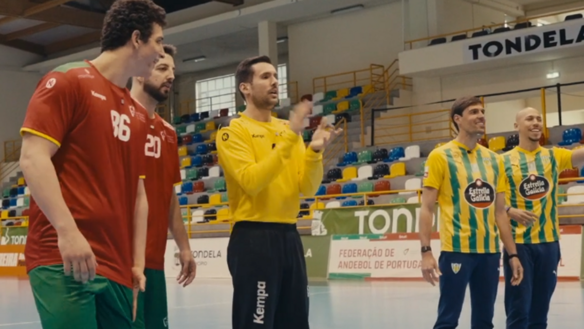 Se o futebol e o andebol alguma vez se juntassem, já imaginou como seria, caro leitor? Ora, foi exatamente isso que aconteceu entre uma comitiva do Tondela e a seleção nacional de andebol, que esteve em estágio na Beira, defrontando ainda a Rep. Checa nesse período. Foi no Pavilhão Municipal de Tondela que Capdeville, Miguel Neves e Ricardo Brandão receberam um grupo de beirões com João Afonso, Juanse Rodríguez e Cícero para um jogo de bola na barra. No entanto, o 'twist' desta iniciativa é que os jogadores de futebol tinham de acertar com uma bola de andebol na barra de uma pequena baliza, ao passo que os jogadores de andebol tiveram de o fazer com o pé. No final, os perdedores tiveram 'de encher'... [Crédito: Tondela]