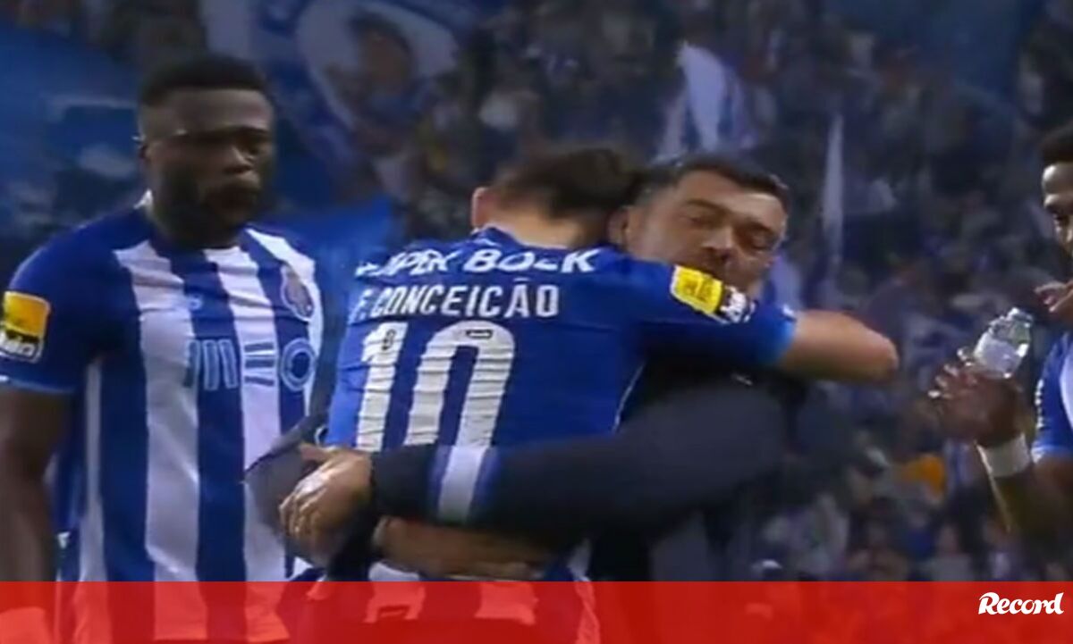 Sérgio Conceição foi convidado a comentar o abraço que deu ao filho Francisco nos festejos do quarto golo do FC Porto frente ao Vizela, no triunfo (4-2) este sábado, para a 32.ª jornada do campeonato. O treinador lembrou que o filho ainda é jovem e garantiu que o trata da mesma forma que todos os restantes elementos do plantel.
