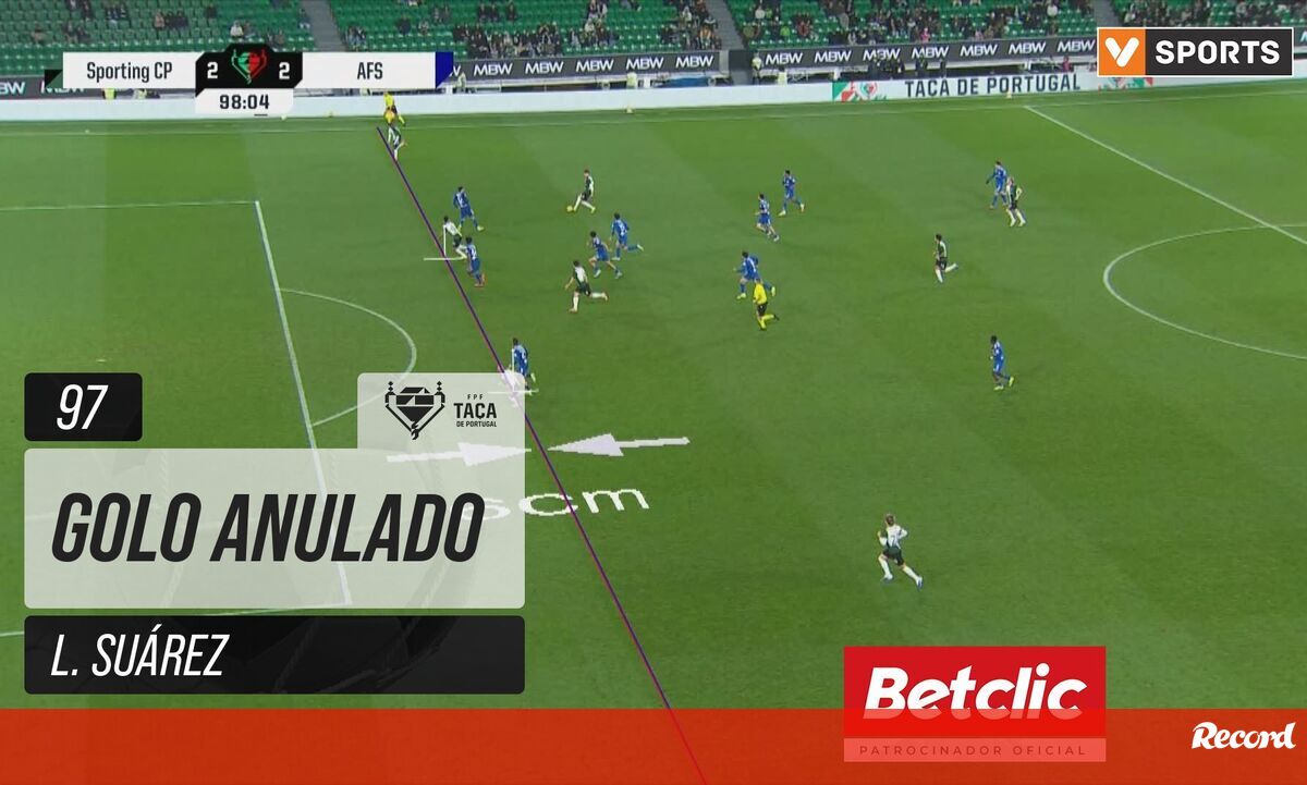 Luis Suárez ainda celebrou, mas o golo que marcou no prolongamento do jogo com o AVS SAD acabou anulado por fora de jogo. O avançado do Sporting estava 6 centímetros para lá da linha defensiva contrária.