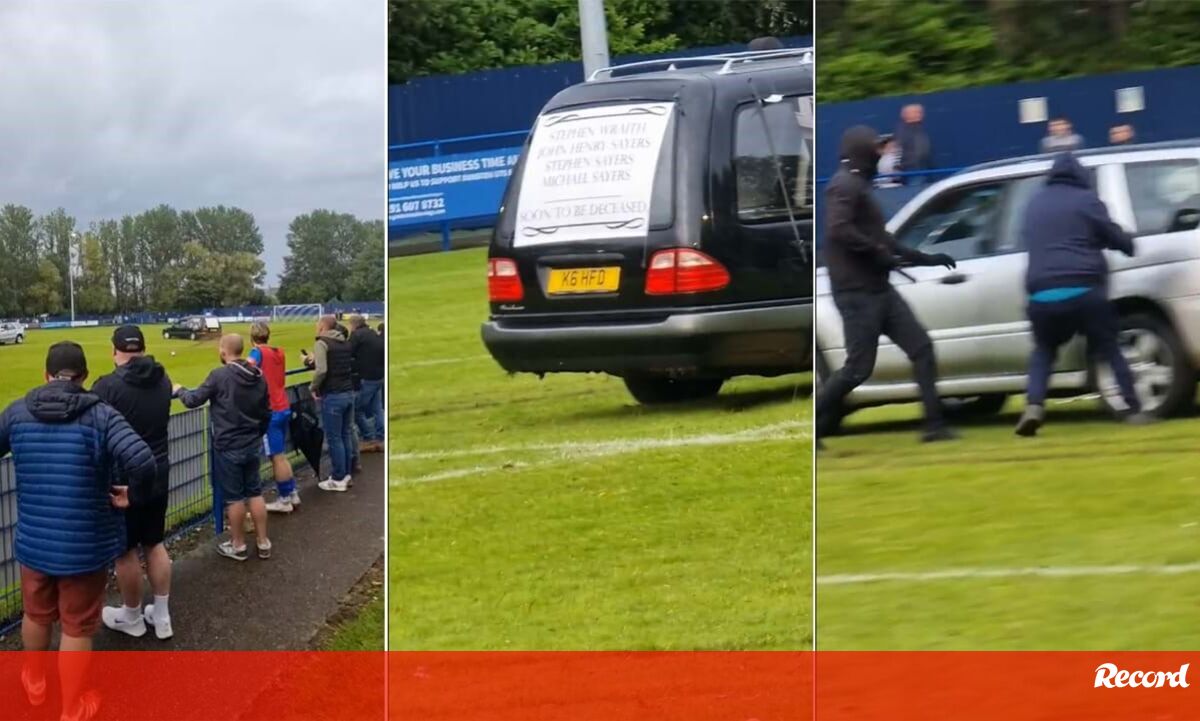 Surreal: jogo suspenso após homens encapuzados invadirem relvado em carro... funerário