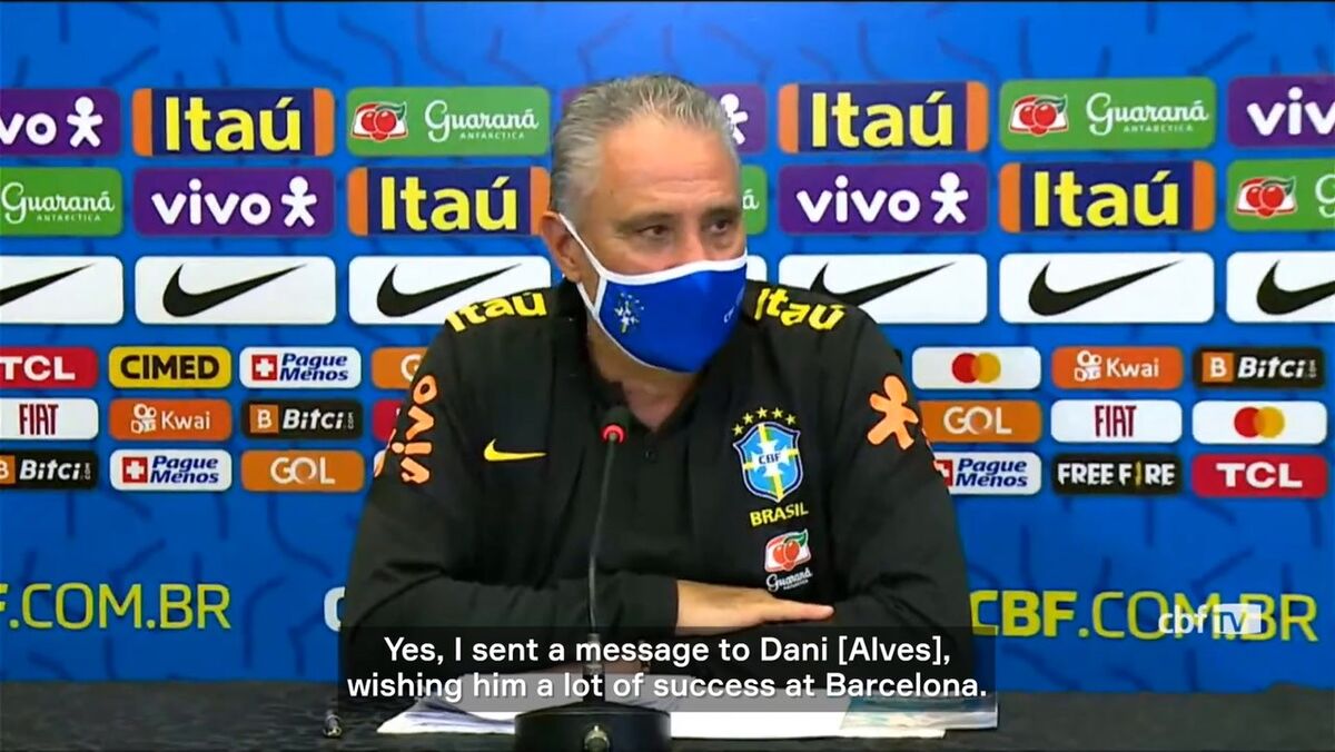 Tite tinha sido questionado sobre o regresso de Dani Alves ao Barcelona, mas acabou por revelar uma conversa com Lucas Veríssimo, defesa-central do Benfica que se encontra afastado dos relvados até ao final da temporada por lesão. Assumindo o facto de ter mandado uma mensagem ao experiente lateral brasileiro, o selecionador do Brasil acabou também por revelar ter desejado esta segunda-feira "uma grande recuperação" ao central das águias. [Vídeo: OneFootball]