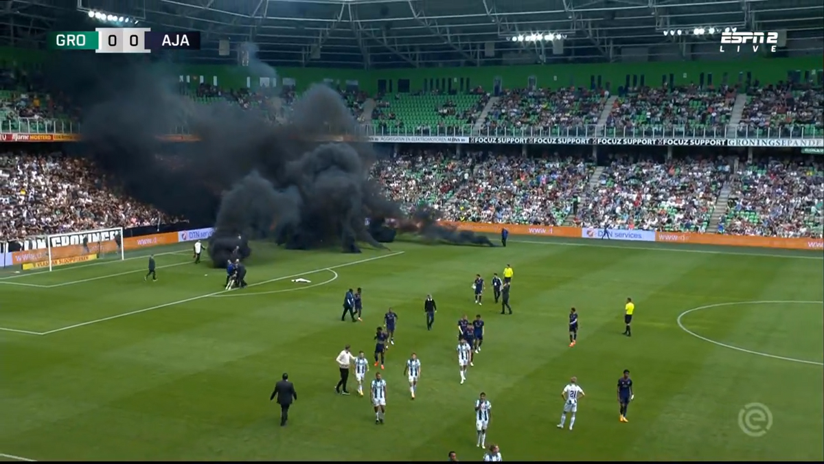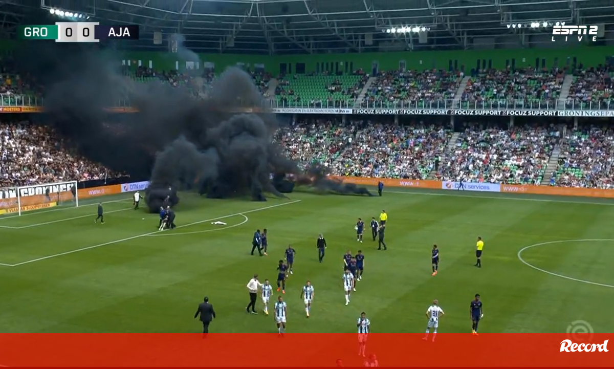 Tochas de fumo negro e invasões de campo: Groningen-Ajax suspenso após revolta dos adeptos
