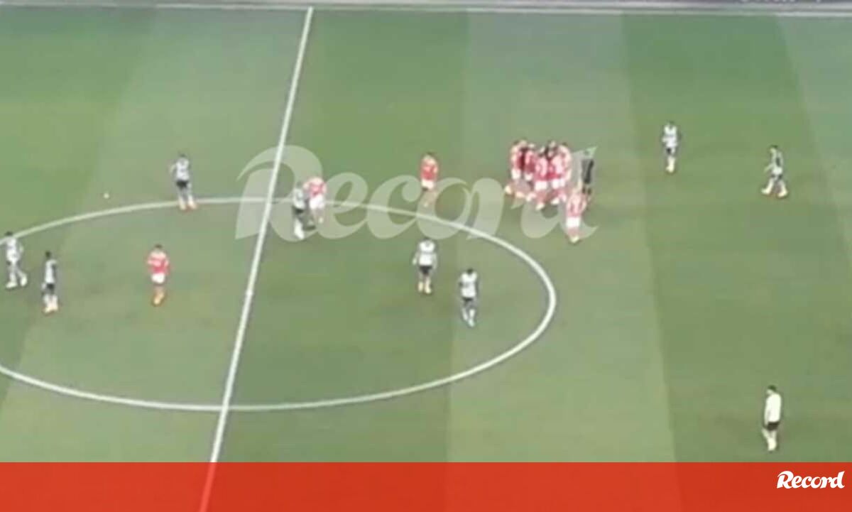 Todos de pé no banco do Benfica, Amorim nervoso e jogadores encarnados a rodear João Pinheiro após apito final