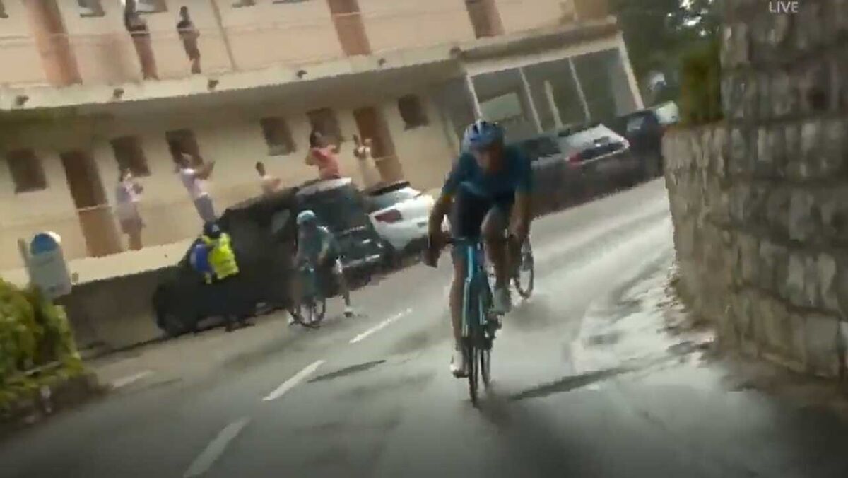 O Tour'2020 começou este sábado. A primeira etapa tem sido bastante acidentada e levou o pelotão a abrandar significativamente o ritmo imposto até então. Miguel Ángel López, líder da Astana, perdeu o controlo da bicicleta e acabou por embater num poste. [Vídeo: Twitter]