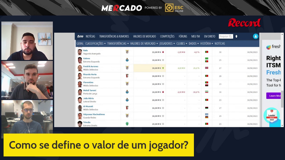 Na mais recente atualização dos valores de mercado dos jogadores da Liga portuguesa, fica patente a descida de valor de jogadores como Rafa (menos 1M€, alcançando os 22M€) e Taremi, o qual, apesar de ter sido o melhor marcador do campeonato, passou a valer 18M€, derivado a uma descida de 2M€. Gonçalo Tristão Santos, colaborador do Transfermarkt, revela como sucede tal fenómeno.