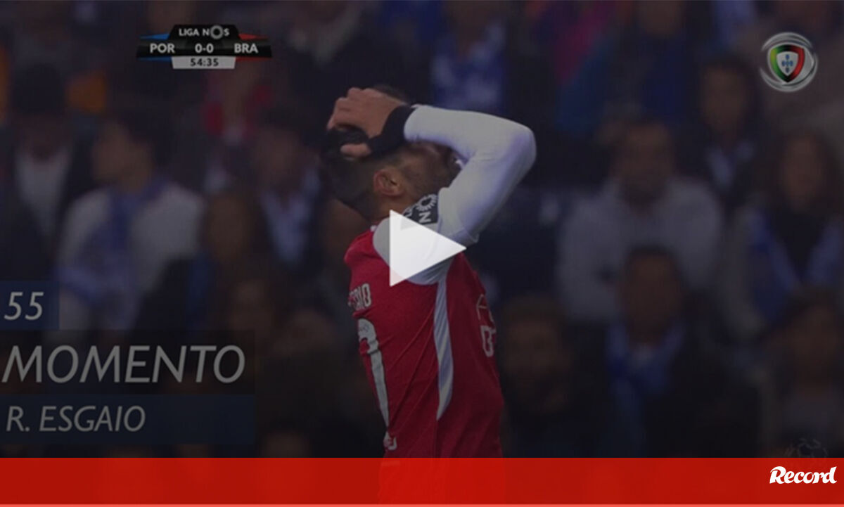 O Sp. Braga entrou decidido na segunda parte no Dragão e ficou perto do primeiro golo neste disparo de Ricardo Esgaio. Valeu ao FC Porto o poste da baliza...