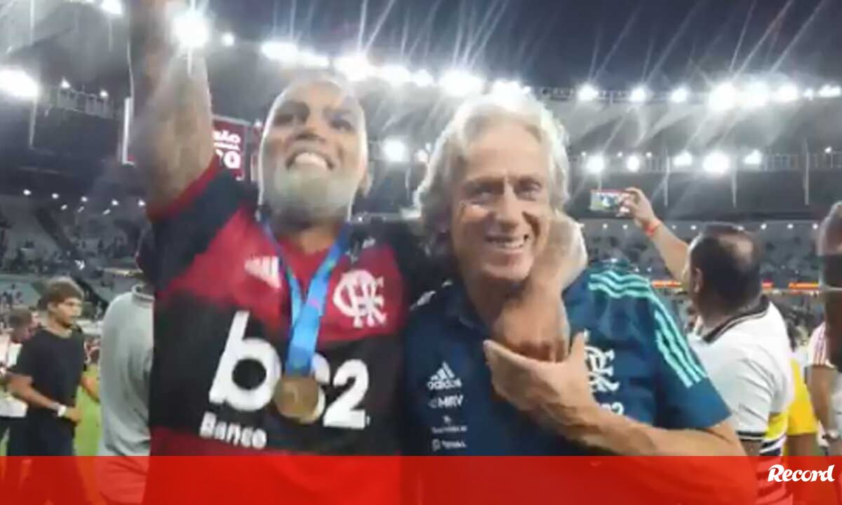 Gabigol foi dos mais animados nas celebrações da conquista da Taça Guanabara pelo Flamengo. O avançado marcou o golo da vitória sobre o Boavista RJ (2-1) e não largava Jorge Jesus nos festejos. Gabigol que, pelo facto de ter descolorado o cabelo e a barba, ficando com tons grisalhos, parecia ter envelhecido uns bons anos...