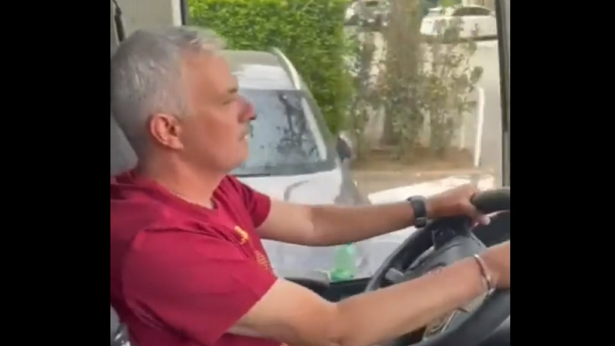 Ainda que apenas durante alguns metros, o autocarro da Roma na festa da conquista da Liga Conferência teve um condutor especial: José Mourinho! O treinador português pegou no volante e fez as delícias do grupo romano. Nuno Santos, treinador de guarda-redes, fez 'cara feia' para a câmara, dando conta de que poderia ser atropelado. Mas tudo com uma grande boa disposição...