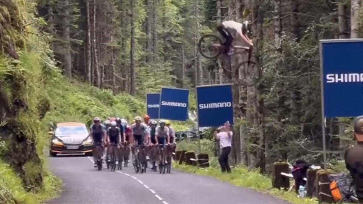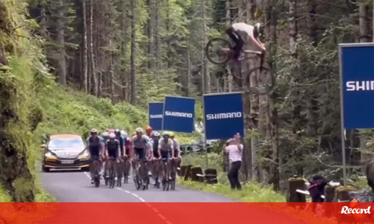 Valentin Anouilh já o tinha feito em 2019 e este ano repetiu-se a gracinha. Mas agora bem mais alto e mais longo... Aconteceu ontem, na etapa do Tour, quando o profissional de MTB decidiu voar por cima do pelotão de forma incrível. A reação dos ciclistas, nomeadamente de Marc Soler, diz tudo!