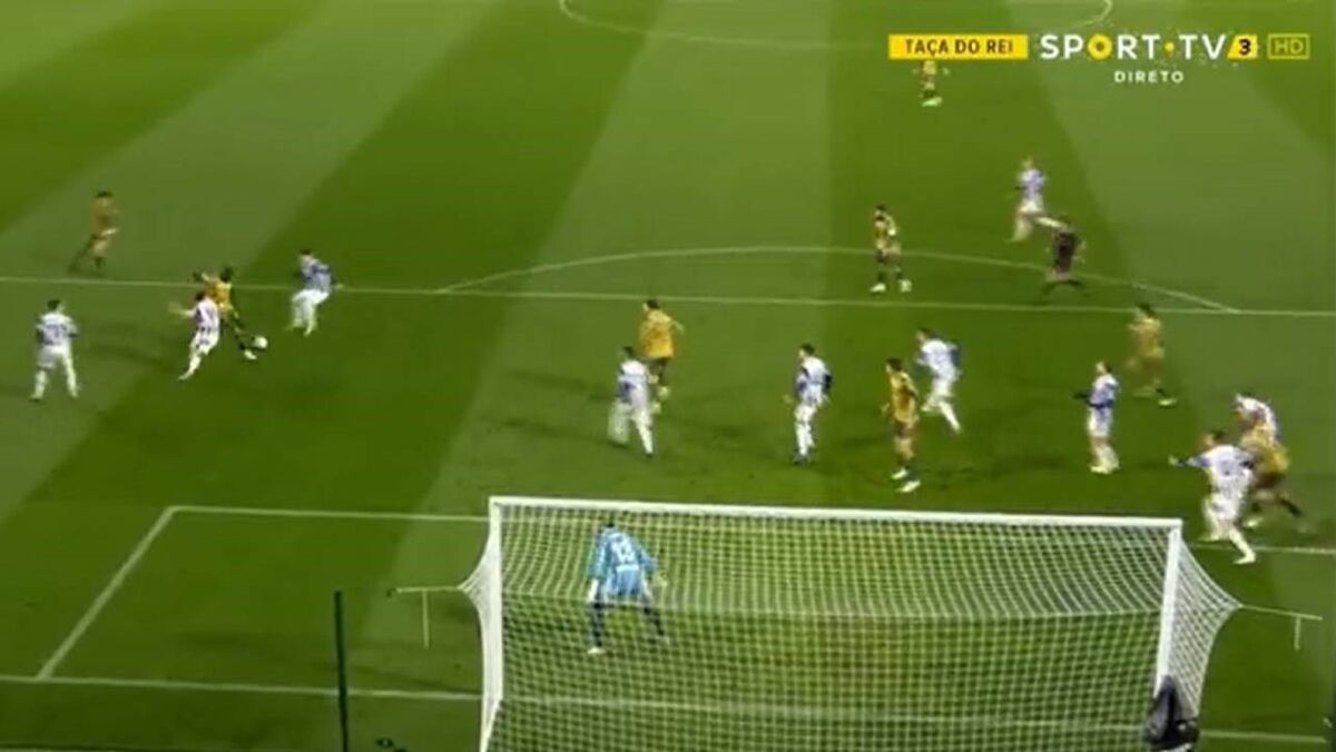 Médio luso aproveitou um desvio na área adversária, driblou um oponente e atirou colocado no fundo das redes