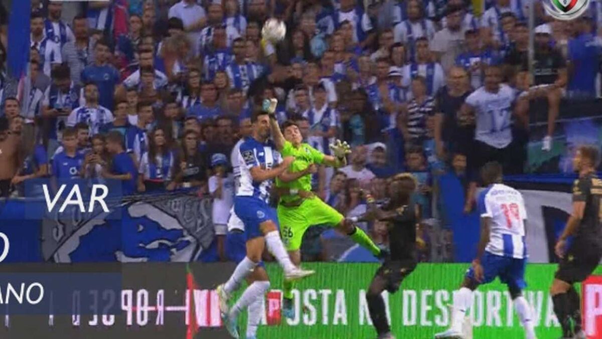 Aos 59' do FC Porto-V. Guimarães, Carlos Xistra foi ao VAR analisar um potencial penálti de Miguel Silva sobre Marcano, mas mandou seguir.